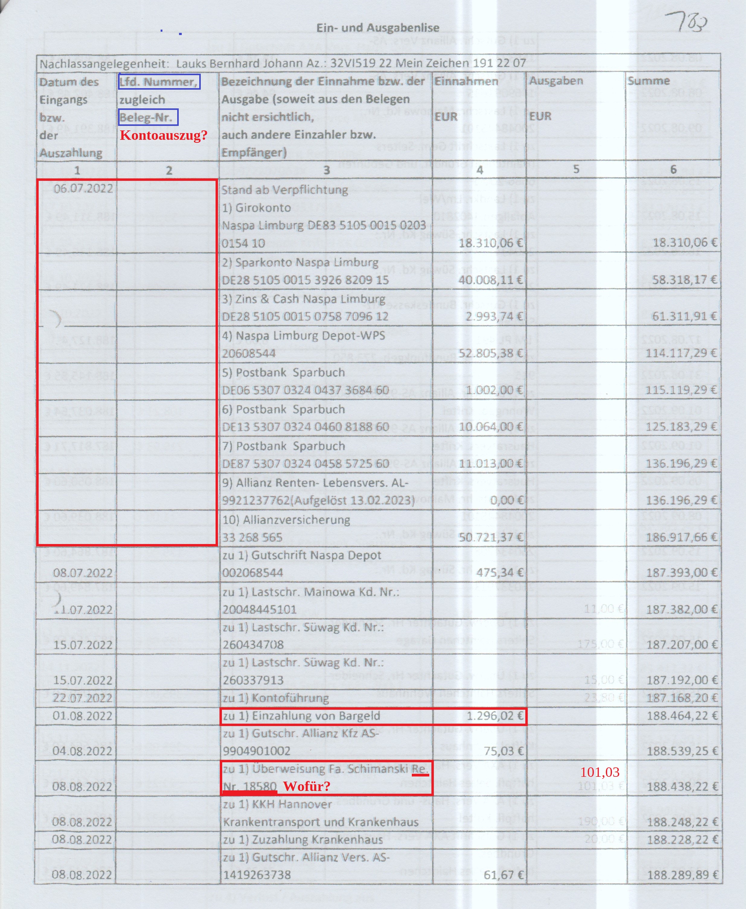 Blatt der Akte 96 23.08.2023 Verzeichnis d. Erben, der Erbberechtigten