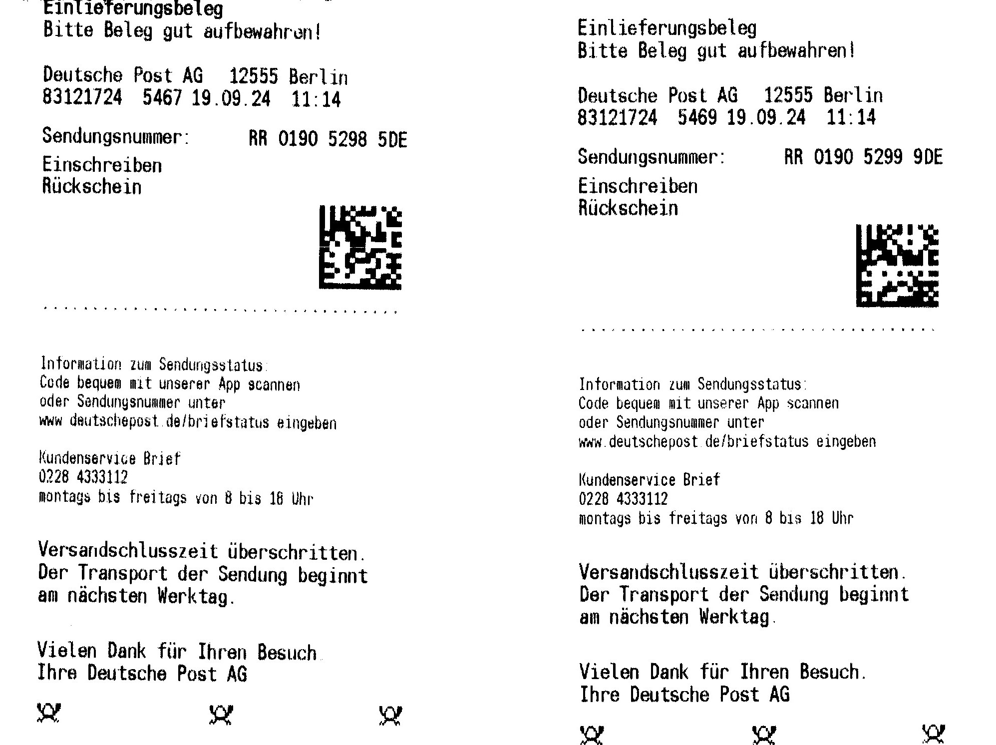 „2. die uns genannten Kopien können gefertigt und versandt werden.“ – ohne Gebühr? – war das statthaft?