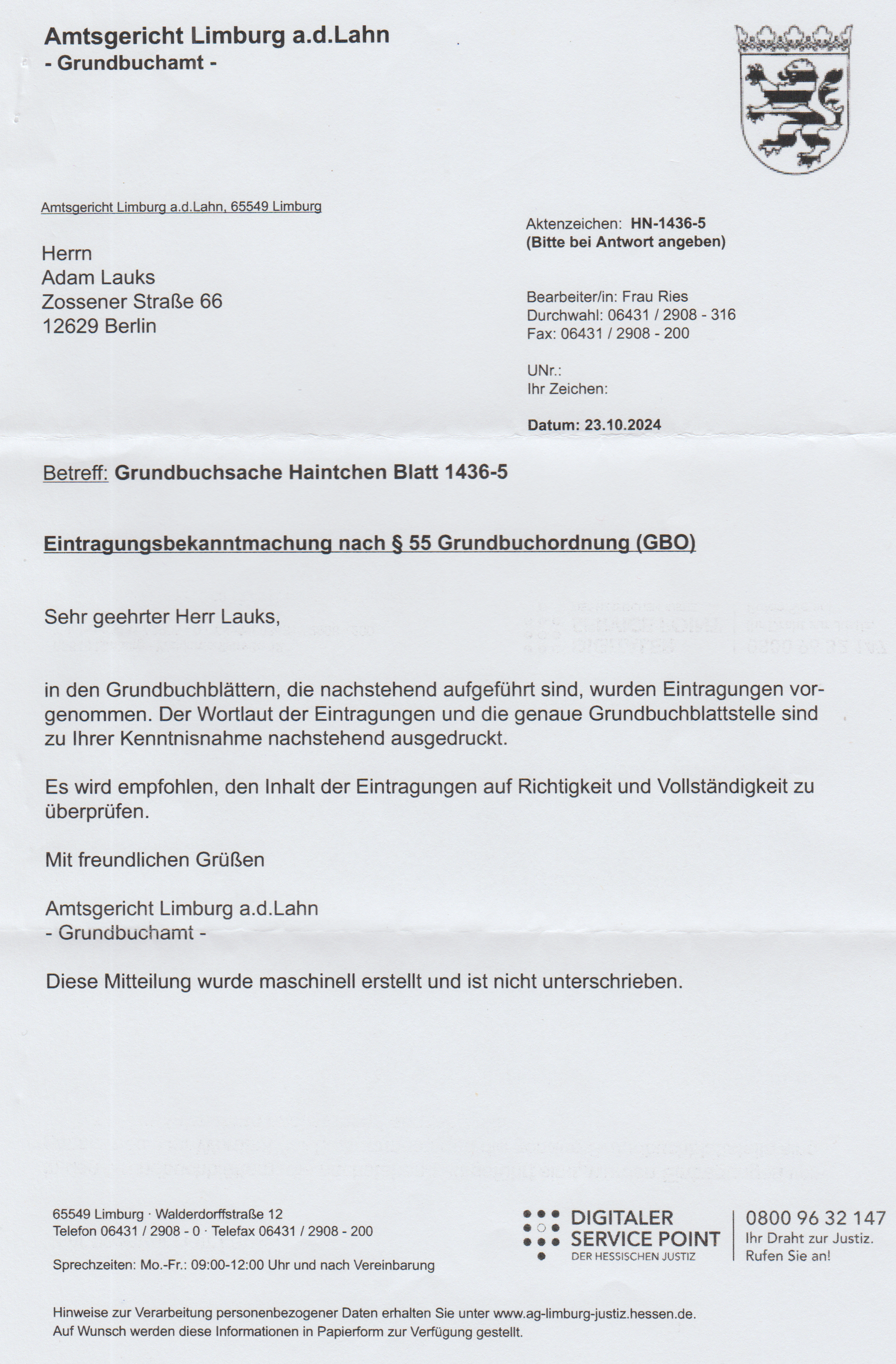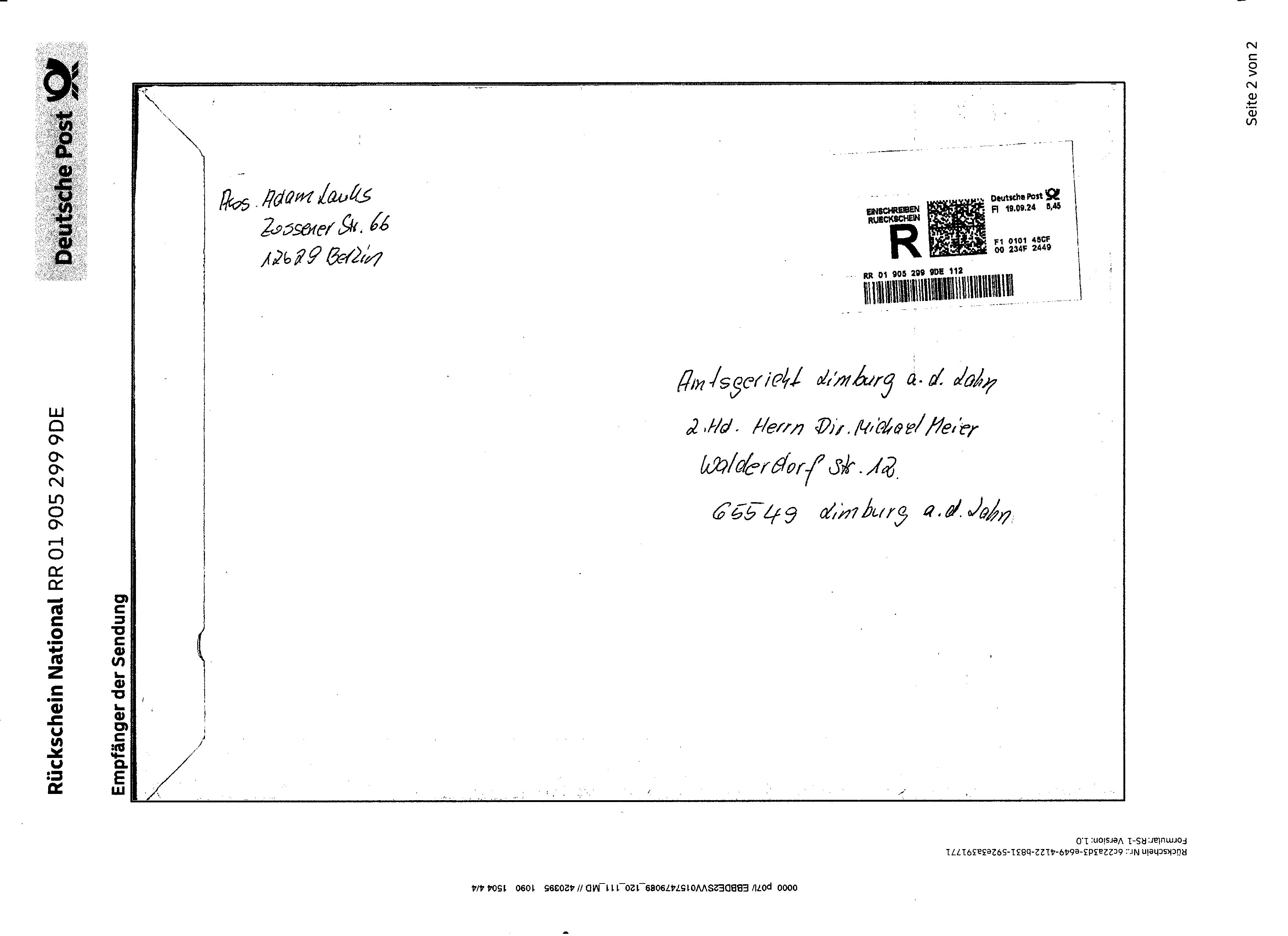 Blatt der Akte 260 09.07.2024 an Scholl und Direktor des AG Limburg M. Meier