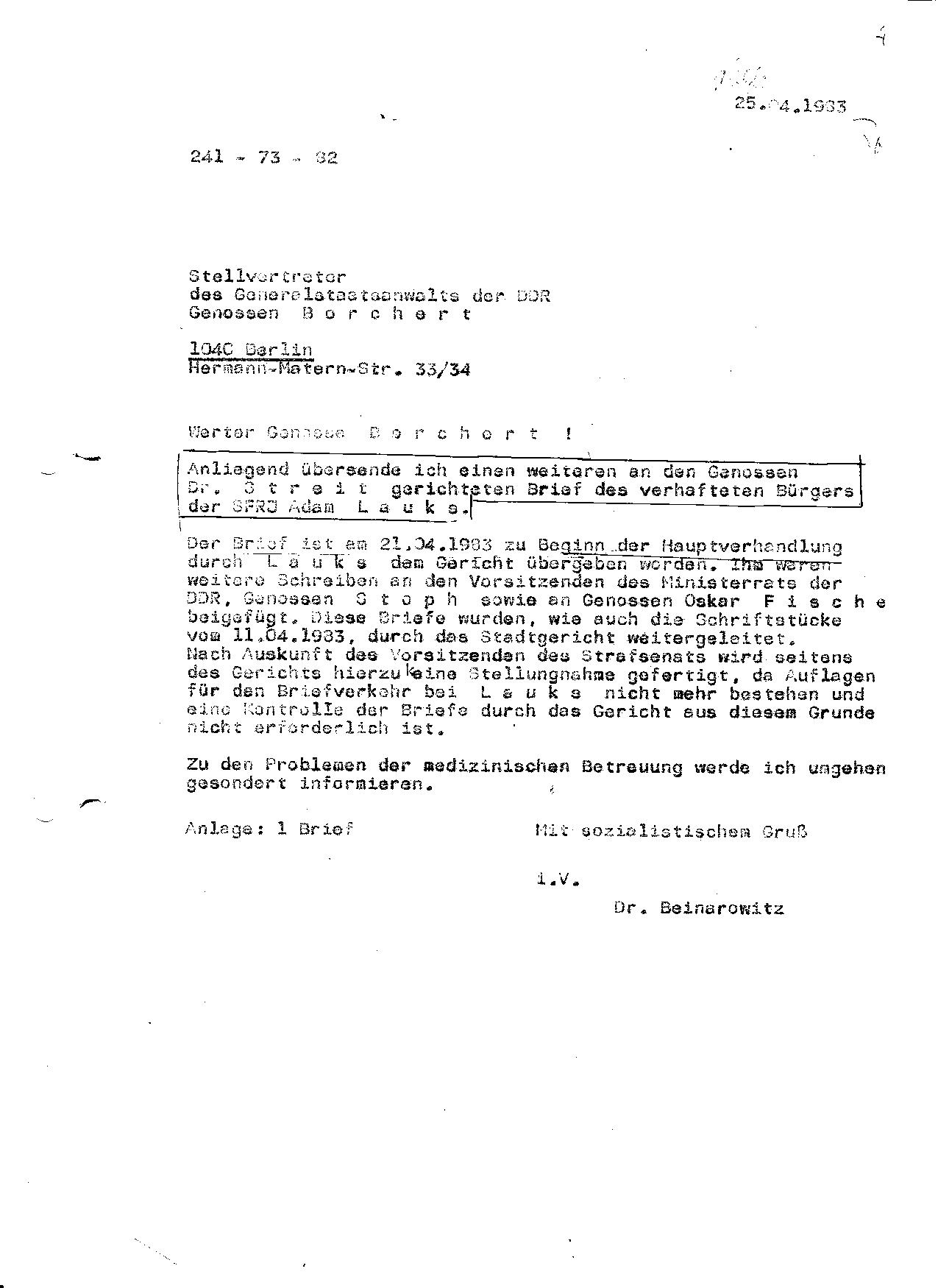 Dr. Beinarowitz i.V….Zu den Problemen der medizinischen Betreuung werde ich umgehend gesondert informieren.