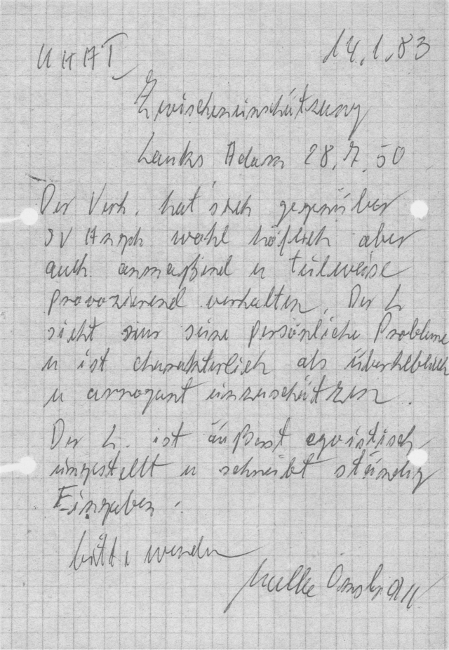 ← „lückenlose medizinische Betreuung nach gegebenen Weisungen und Befehlen des MfS“ wurde zum Operativ Vorgang gegen VH und später SG Adam Lauks alias Staatsfeind der DDR Nr. 1 „Merkur“ in: Berlin Rummelsburg; Leipzig Meusdorf; Dresden; Berlin Buch und Spezielle Strafvollzugsabteilung Waldheim.