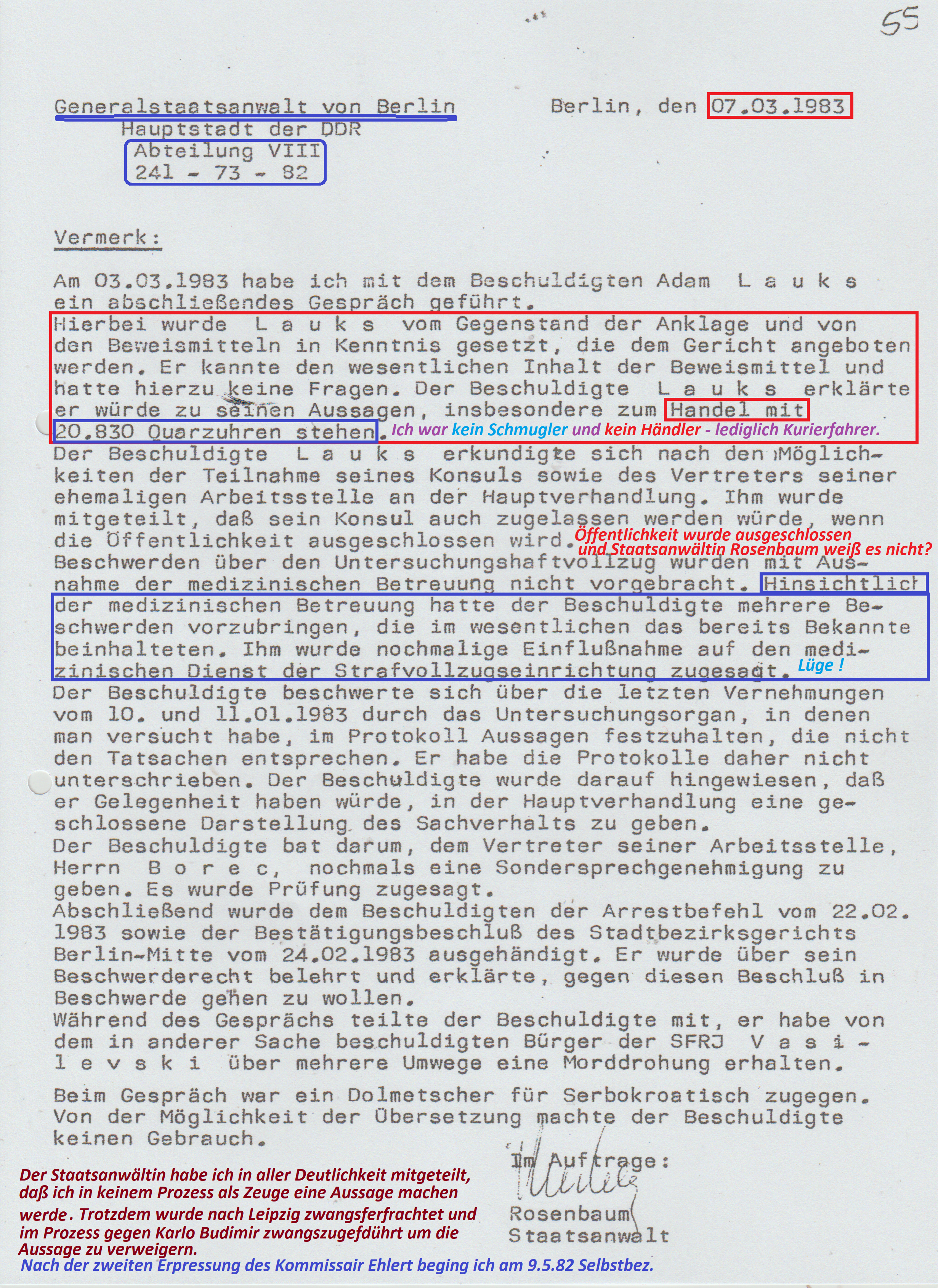 ← „lückenlose medizinische Betreuung nach gegebenen Weisungen und Befehlen des MfS“ wurde zum Operativ Vorgang gegen VH und später SG Adam Lauks alias Staatsfeind der DDR Nr. 1 „Merkur“ in: Berlin Rummelsburg; Leipzig Meusdorf; Dresden; Berlin Buch und Spezielle Strafvollzugsabteilung Waldheim.