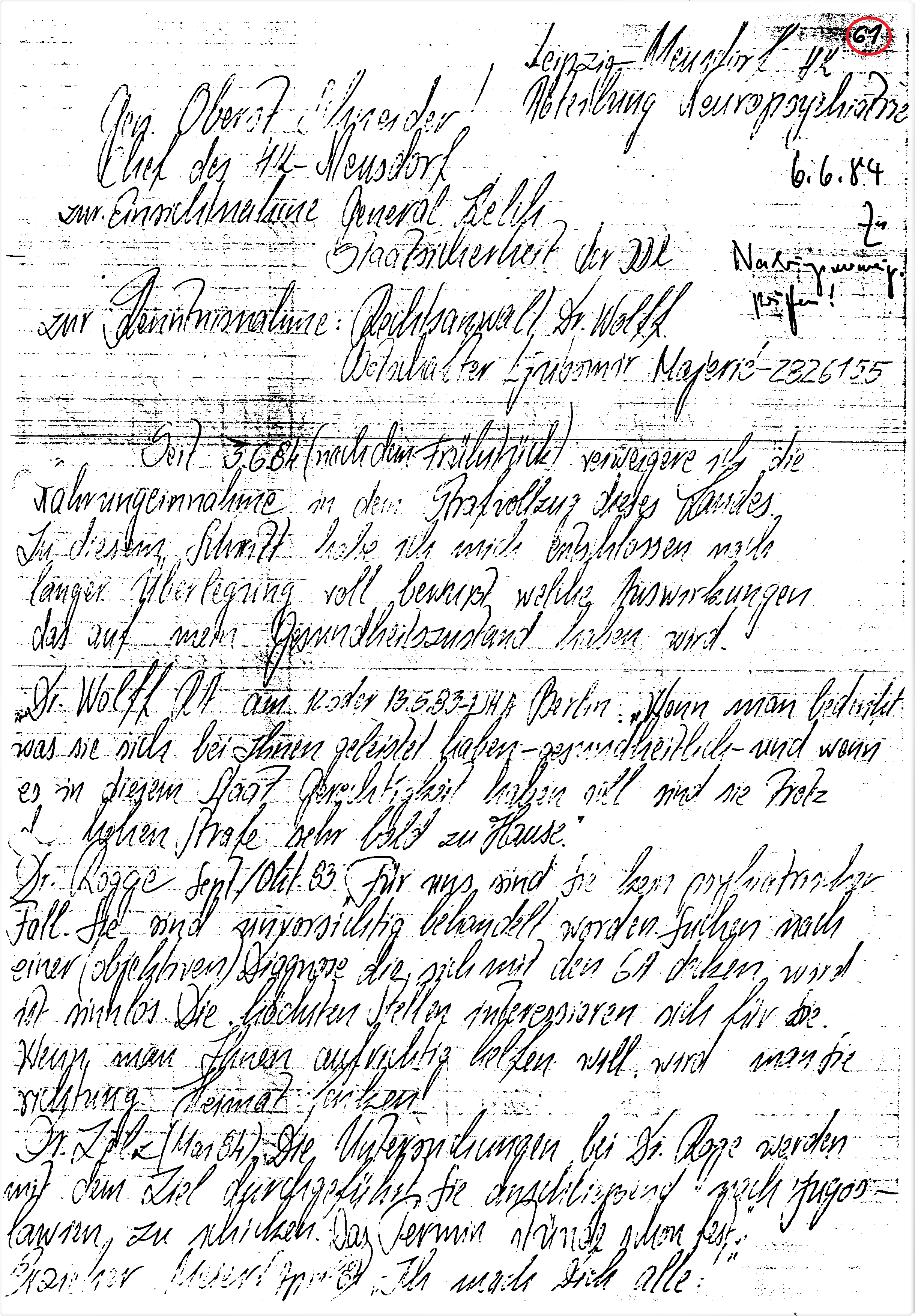 ← „lückenlose medizinische Betreuung nach gegebenen Weisungen und Befehlen des MfS“ wurde zum Operativ Vorgang gegen VH und später SG Adam Lauks alias Staatsfeind der DDR Nr. 1 „Merkur“ in: Berlin Rummelsburg; Leipzig Meusdorf; Dresden; Berlin Buch und Spezielle Strafvollzugsabteilung Waldheim.