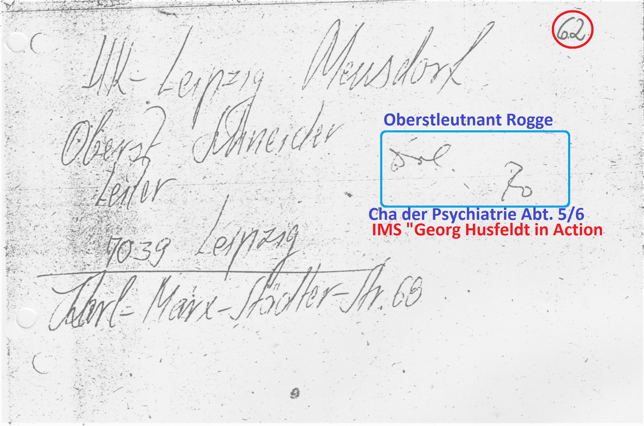 ← „lückenlose medizinische Betreuung nach gegebenen Weisungen und Befehlen des MfS“ wurde zum Operativ Vorgang gegen VH und später SG Adam Lauks alias Staatsfeind der DDR Nr. 1 „Merkur“ in: Berlin Rummelsburg; Leipzig Meusdorf; Dresden; Berlin Buch und Spezielle Strafvollzugsabteilung Waldheim.