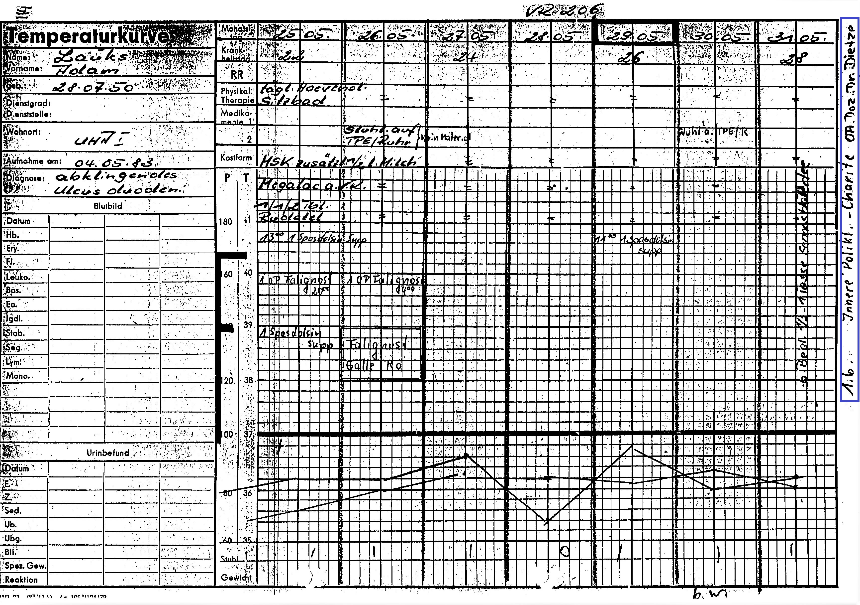 ← „lückenlose medizinische Betreuung nach gegebenen Weisungen und Befehlen des MfS“ wurde zum Operativ Vorgang gegen VH und später SG Adam Lauks alias Staatsfeind der DDR Nr. 1 „Merkur“ in: Berlin Rummelsburg; Leipzig Meusdorf; Dresden; Berlin Buch und Spezielle Strafvollzugsabteilung Waldheim.