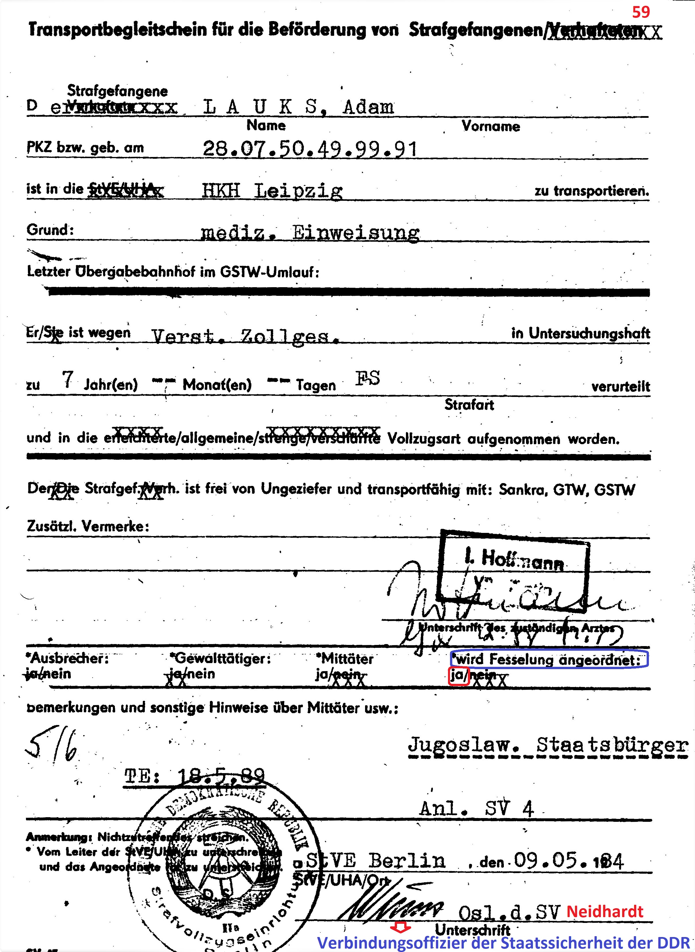 ← „lückenlose medizinische Betreuung nach gegebenen Weisungen und Befehlen des MfS“ wurde zum Operativ Vorgang gegen VH und später SG Adam Lauks alias Staatsfeind der DDR Nr. 1 „Merkur“ in: Berlin Rummelsburg; Leipzig Meusdorf; Dresden; Berlin Buch und Spezielle Strafvollzugsabteilung Waldheim.