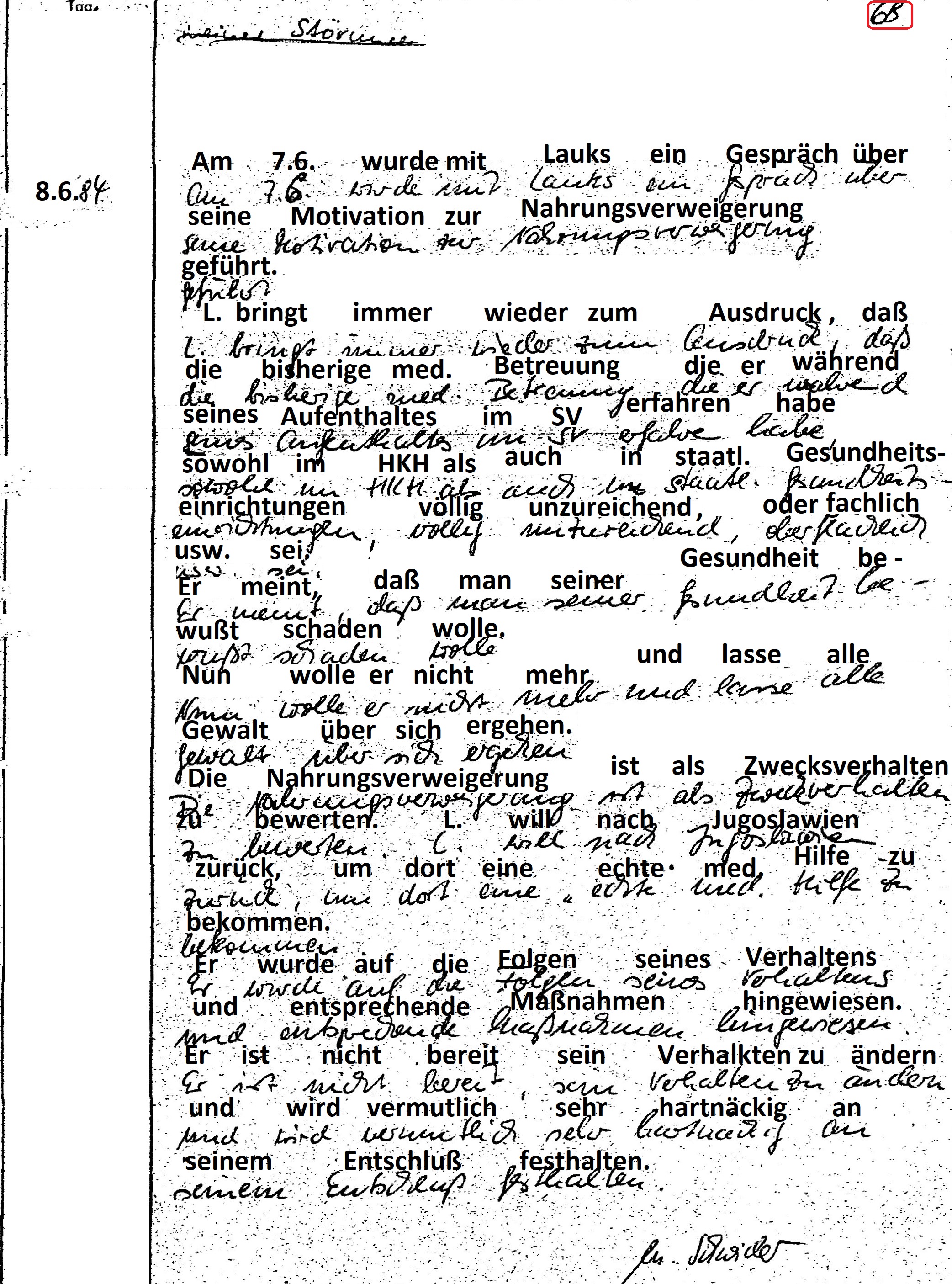 ← „lückenlose medizinische Betreuung nach gegebenen Weisungen und Befehlen des MfS“ wurde zum Operativ Vorgang gegen VH und später SG Adam Lauks alias Staatsfeind der DDR Nr. 1 „Merkur“ in: Berlin Rummelsburg; Leipzig Meusdorf; Dresden; Berlin Buch und Spezielle Strafvollzugsabteilung Waldheim.