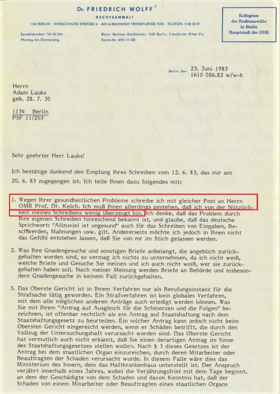 ← RA Dr. Friedrich Wolff – IMS „Jura“ war nur einer von hunderten Mandantenverräter unter Juristen der DDR !!! „ALLES WAS RECHT IST“ – Lügner und Brandstifter bis in den Tod – Auswurf des DDR – Sozialismus und juristischer Scherge des MfS kann sich 8 Jahrenm nach dem Prozess gegen Adam Lauks und an Adam Lauks nicht mehr erinnern!?