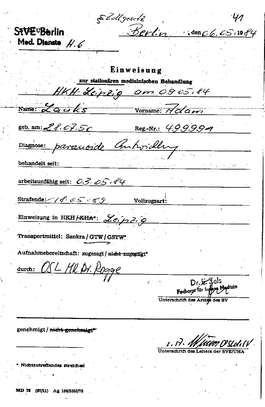 Zwankseinweisung in die Psychiatrie des Haftkrankenhauses Leipzig Meusdorf. VERSCHLEPPUNG die Zweite !
