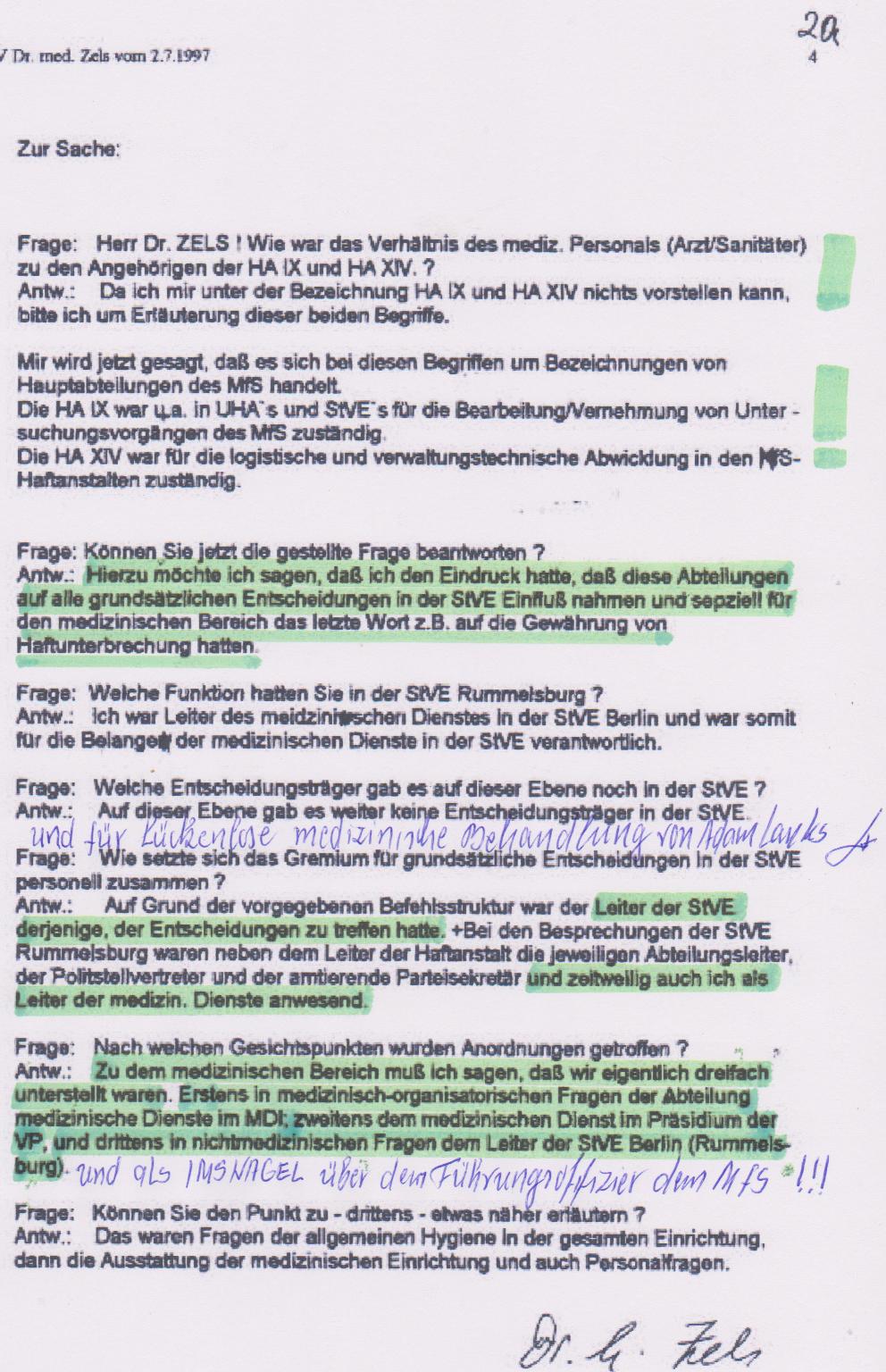 Hierzu möchte ich sagen, daß ich den Eindruck hatte(also wußte er was HA IX und HA XIV sind !)daß diese Abteilungen auf alle grundsätzliche Entscheidungen in der StVE Einfluß nahmen und speziell für dem medizinischen Bereich das letzte Wort. z.B. auf die Gewährung von Haftunterbrechung hatten.