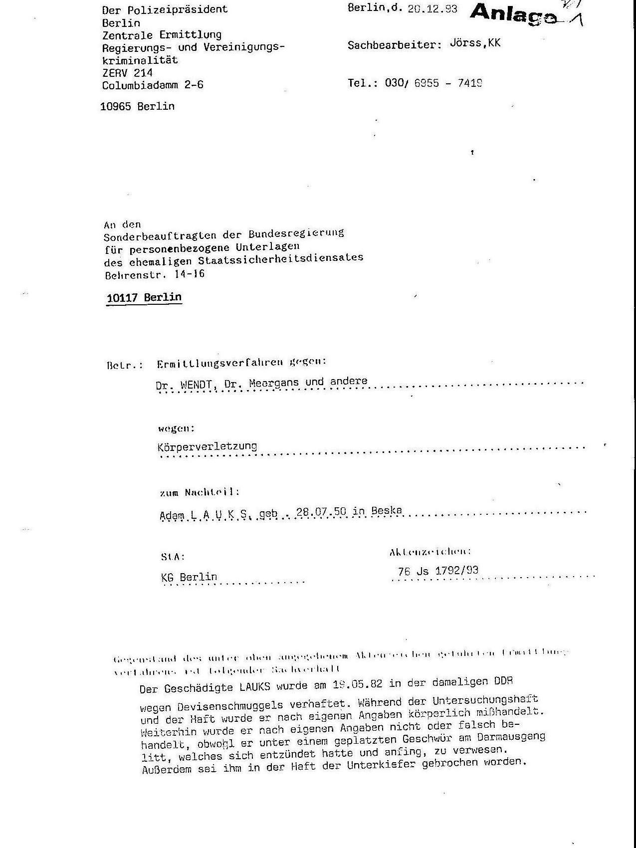 An den Sonderbeauftragten der Bundesregierung für personenjbezogenen STASI-Unterlagen…