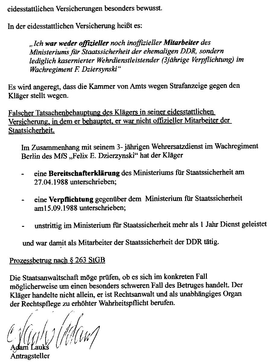 ← Ehemalige STASI-Mitarbeiter, RA Helge Bayer aus Spremberg – schlägt, seit Januar 2013, mit Mitteln des „RechtSStaates“ gnadenlos auf das ungesühnte Folteropfer Adam Lauks am Landgericht Berlin ein unter Vorsitz des Richter Michael Mauck und zwingt ihn in die Insolvenz