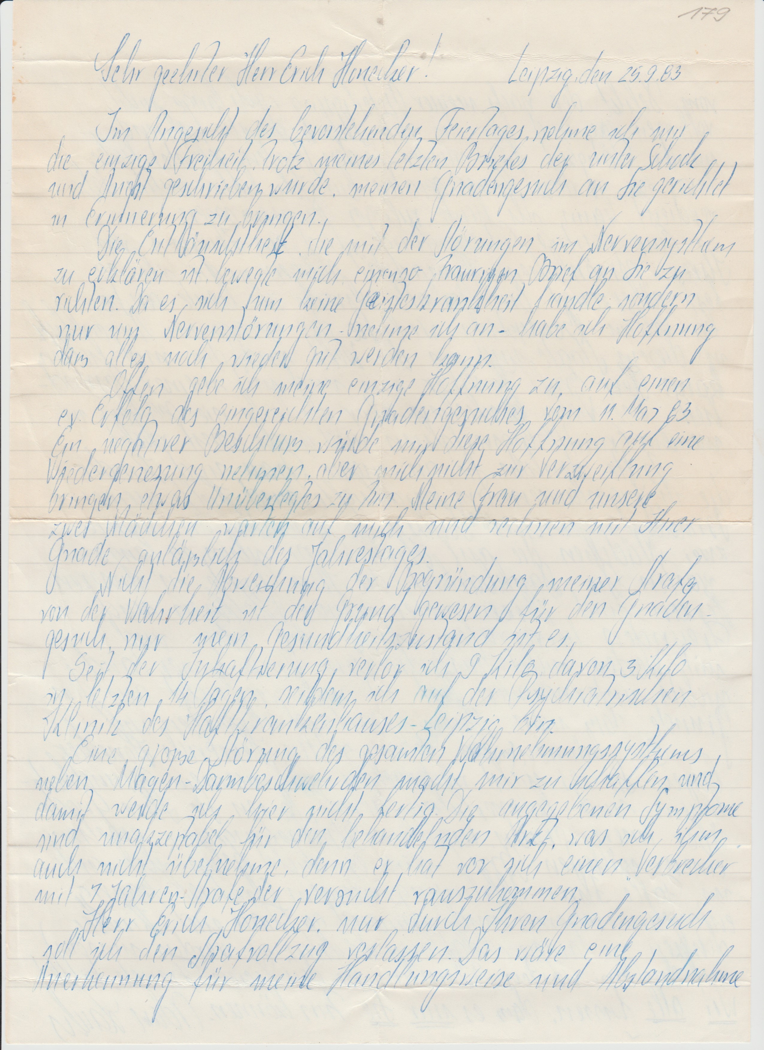 „Offen gebe ich meine einzige Hoffnung zu, auf einen ev.Erfolg des eingereichten Gnadengesuches vom 11.Mai 83. Ein negativer Beschluss würde mir diese Hoffnung auf eine Wiedergenesung nehmen, aber mich nicht zur Verzweiflung bringen etwas Unüberlegtes zu tun. Meine Frau und unsere zwei Mädchen warten auf mich und rechnen mit Ihrer Gnade anläßlich des Feiertages.“
