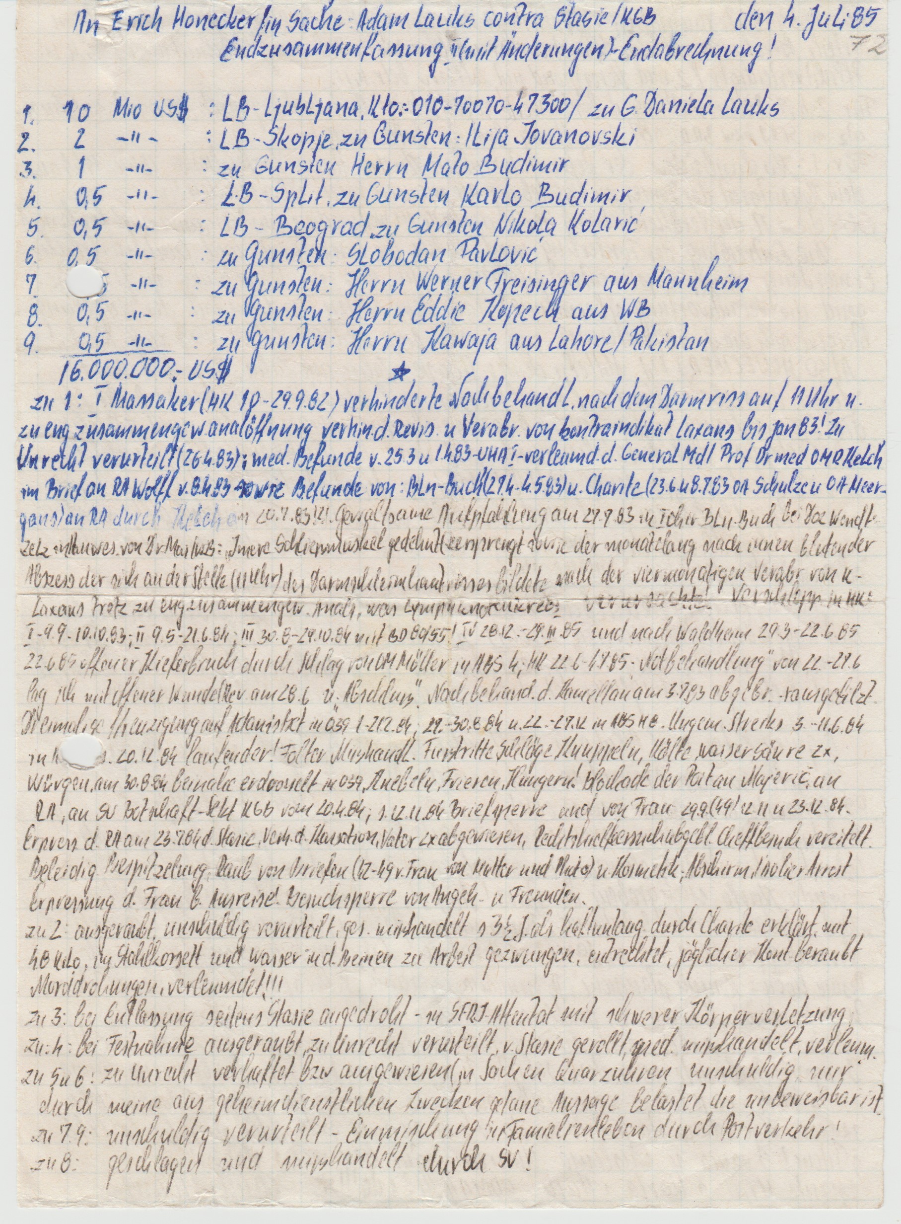 Endzusammenfassung ( mit Änderungen) – Endabrechnung! 4.Juli 85