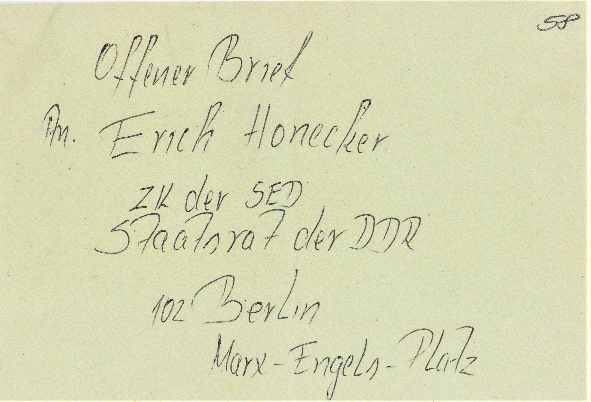 ← BRIEFE AUS DEM JENSEITS KZ Berlin Rummelsburg 1982-1985 : An Erich Honecker Generalsekretärder SED, der auch eine Nacht im Haus 8 logierte