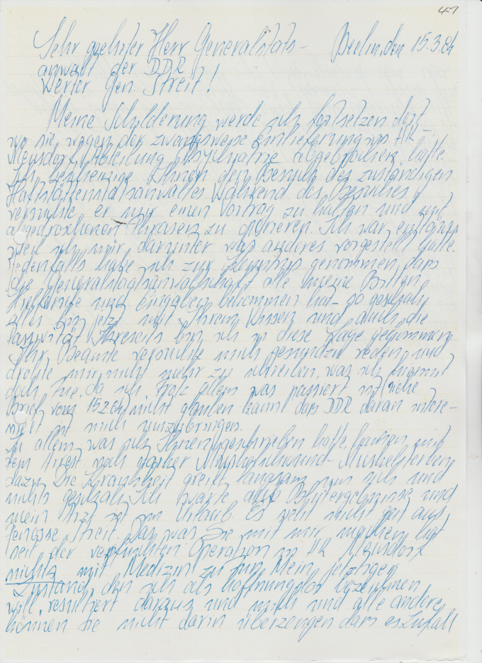 ← BRIEFE AUS DEM JENSEITS – DDR KZ Berlin Rummelsburg / “Rummeline” und Spezielle Strafvollzugsabteilung Waldheim 1982-1985: An Gen. Joseph Streit -Generalstaatsanwalt der DDR