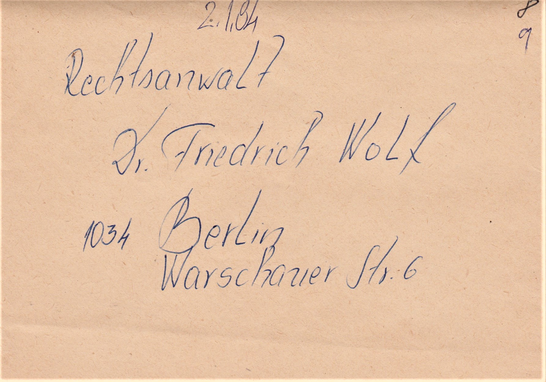 ← BRIEFE AUS DEM JENSEITS -DDR KZ Berlin Rummelsburg / „Rummeline“ 1982-1985 : an den RA Dr. Friedrich Wolff – IMS “ Jura“ der HV A seines Namenvetters Markus Wolf