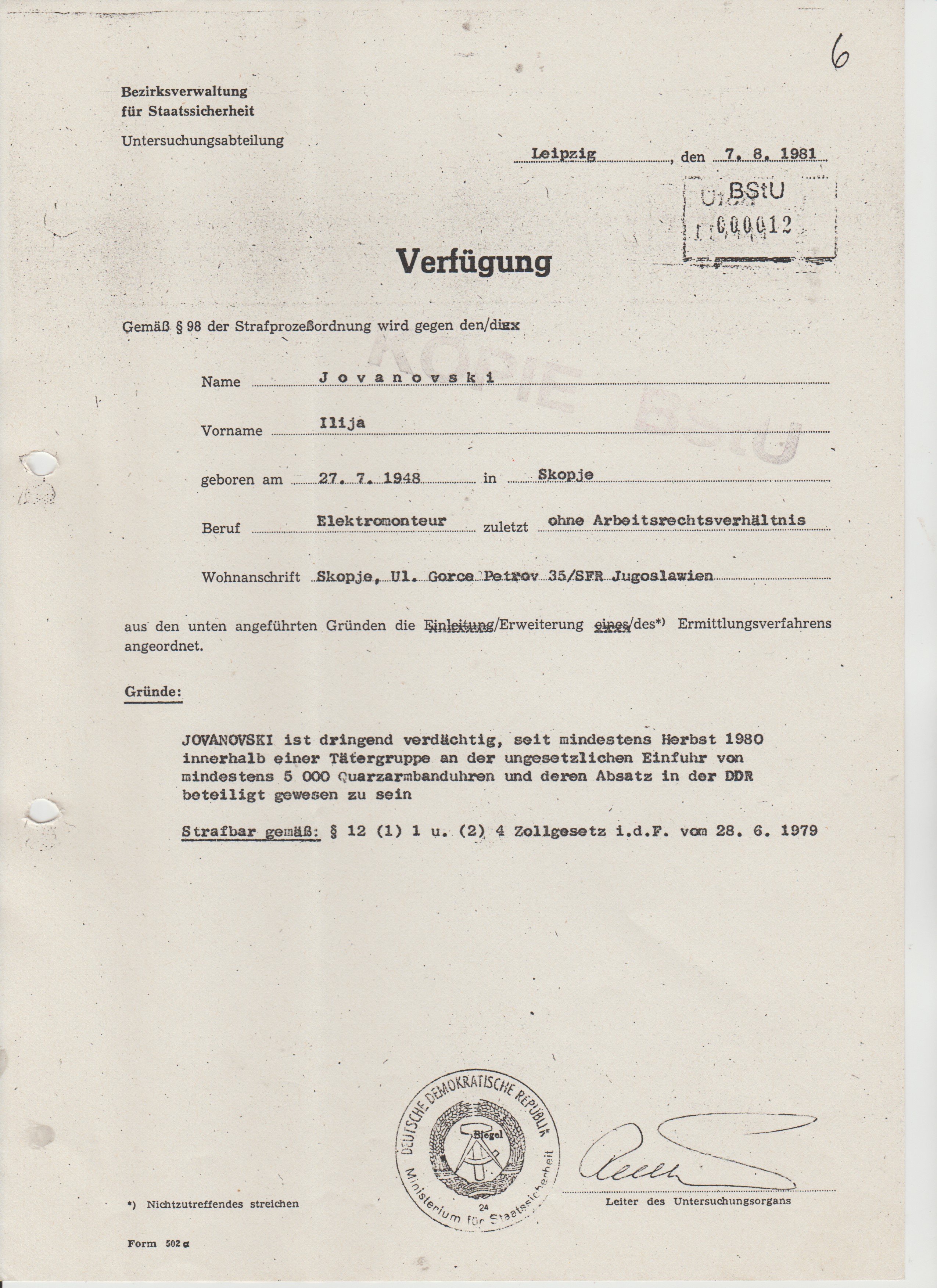 Als es an Beweisen für eine Republikflucht haperte.“Beschuldigung“ der Freundin wäre lediglich Aussage gegen Aussage rückte man drei Wochen später mit der nächsten Anschuldigung raus. Ungesetzliche Einfuhr von mindestens Quarzuhren. Von einer Verhaftung auf frischer Tat kann keine Rede sein. Die Beweise müssen erst „erarbeitet“ werden heißt es in der Richtlinie 1/76