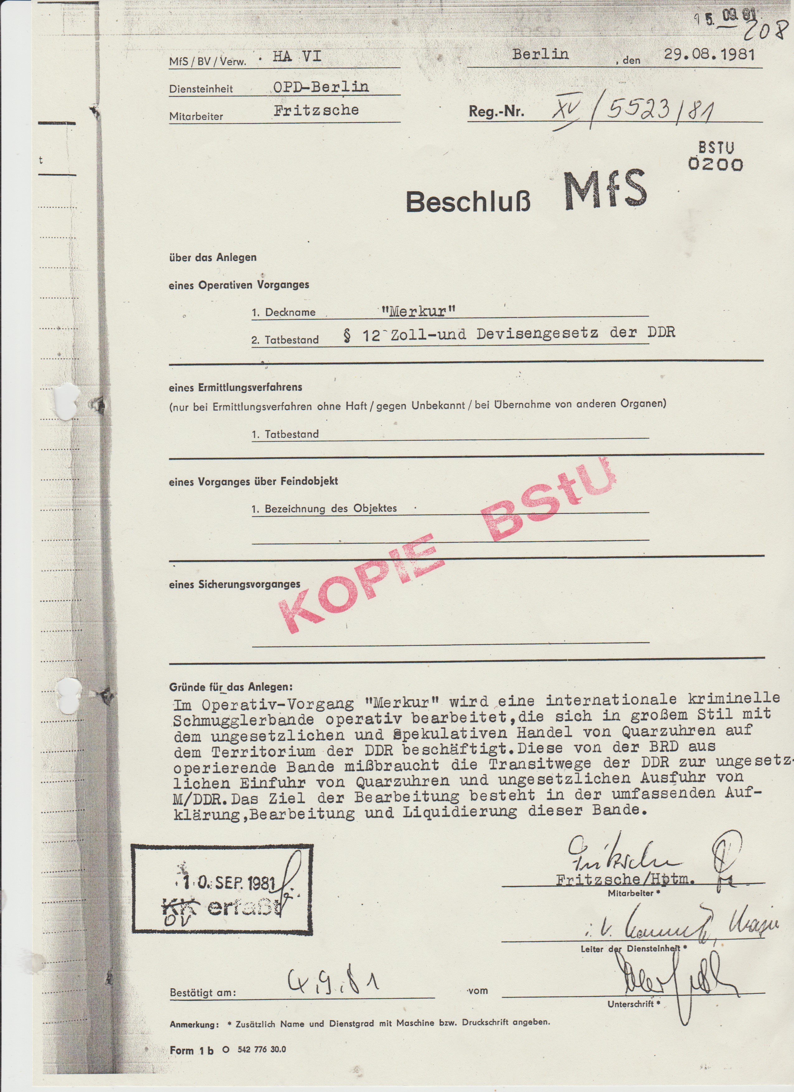 Beschluß zun OV“Merkur“