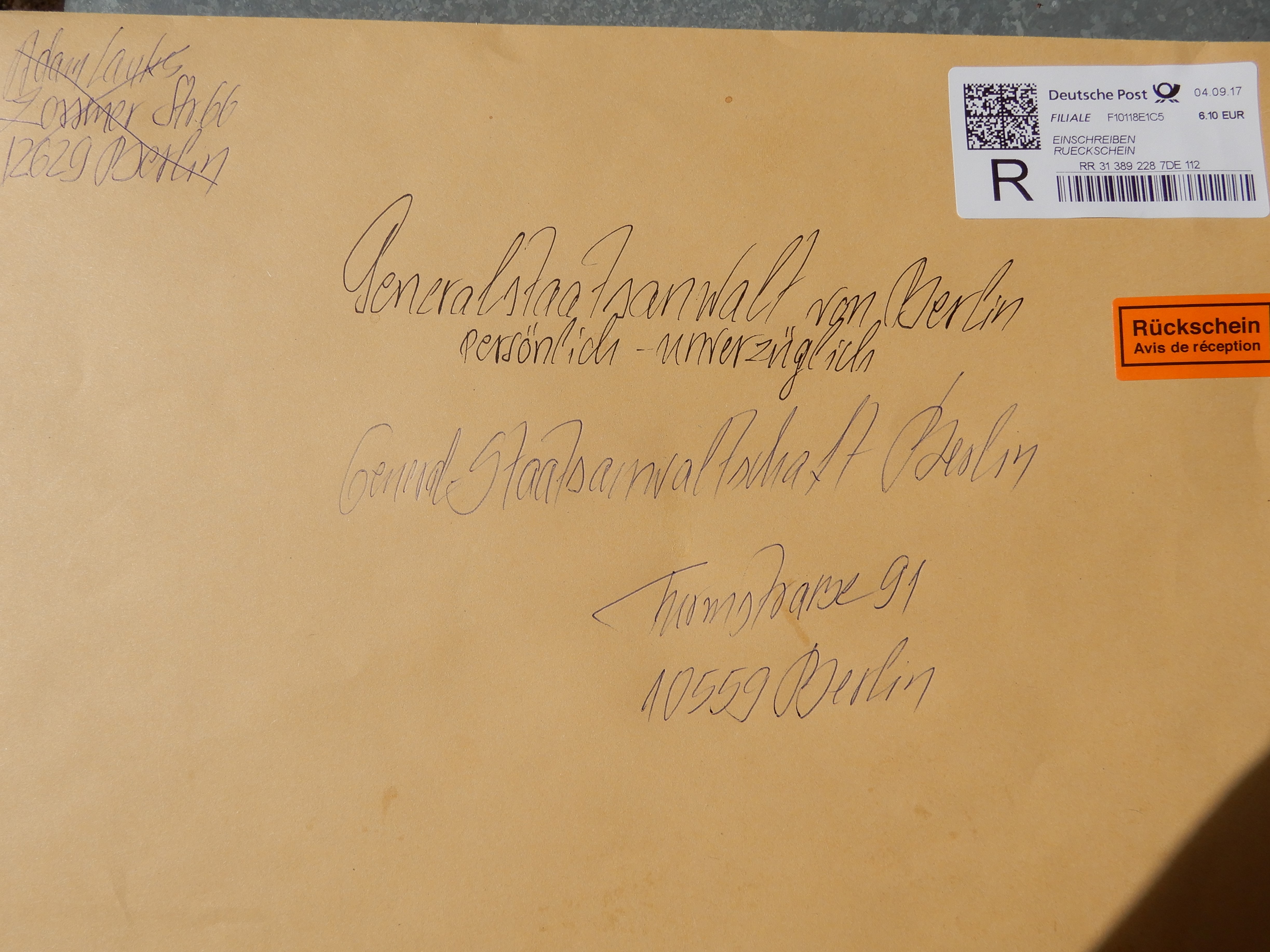 Inliegend: Strafanzeige und Strafantrag gegen Dr. Hubertus Knabe wegen Verstoß gegen Waffengesetz und Bedrohung eines Folteropfers der STASI