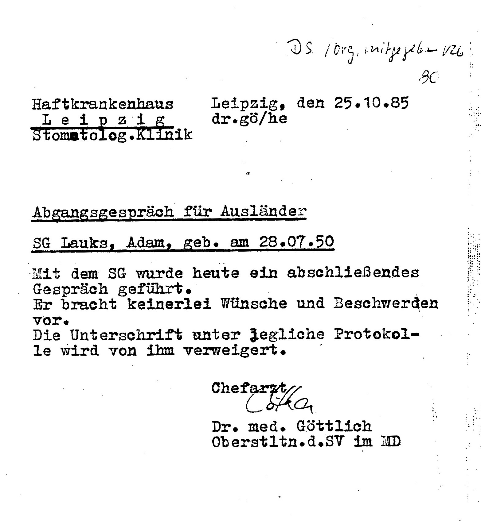 Ärztlicher Abschlußbericht 25.10.1985