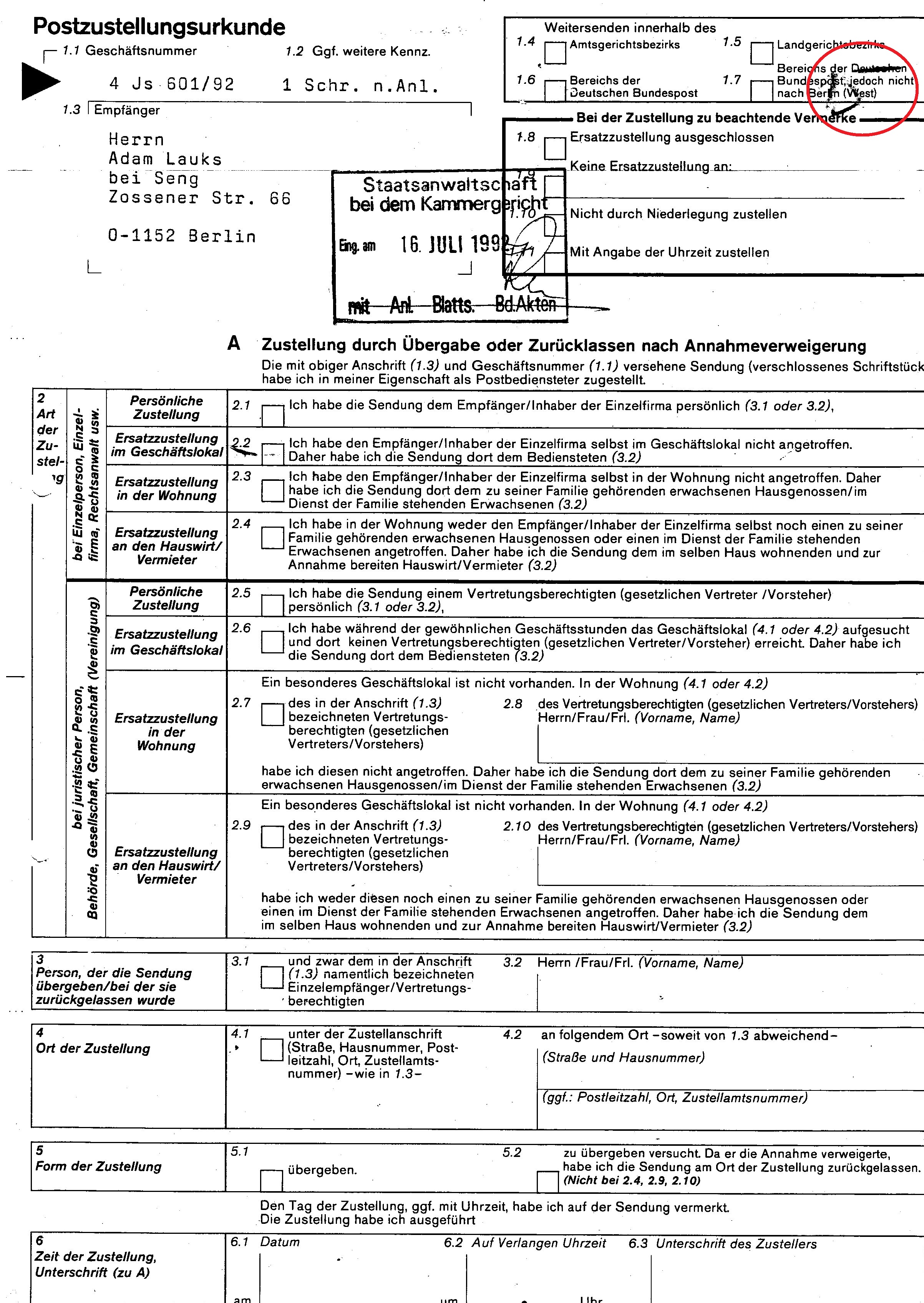← MfS 552 Kass 145/92 Die verhinderte Gerechtigkeit – Vereitelte Kassation eines Folteropfers durch vereinigten/verbrüderten Deutschen Justiz oder wie man aus einem Staatsfeind der DDR zum Staatsfeind der Bundesrepublik machte, nach den Methoden des